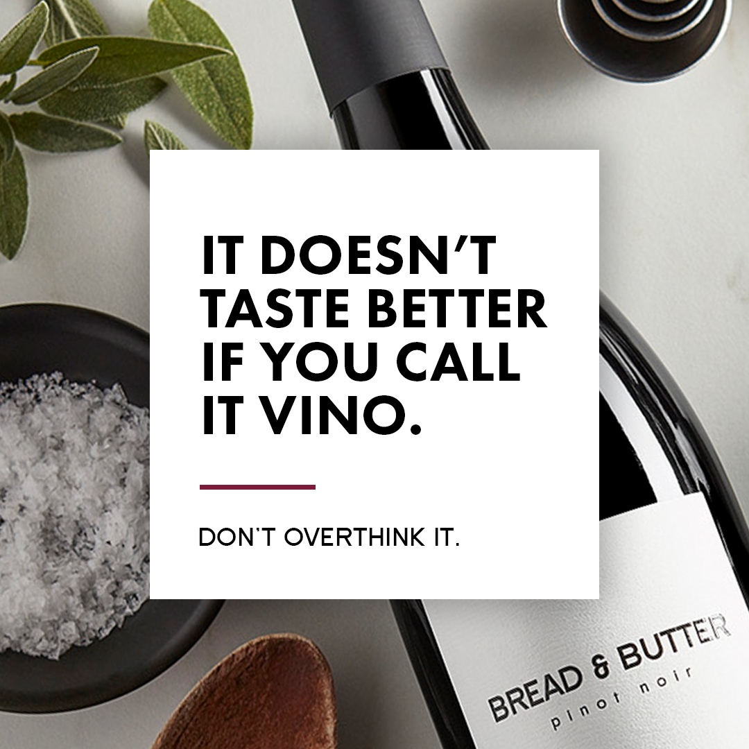 Normal wine marketing is confusing, stuffy, and exclusive. Bread & Butter pushes back on that, reminding people that while life has gotten a little…well… complicated, choosing a wine shouldn’t be. This campaign was released as we all were navigating returning to society after the height of the pandemic, so we tapped into the truth that a lot of us are feeling a little more anxious, a little more awkward, and a lot more worried about the little things. We reminded people that social situations rarely go as badly as you think they do, but bringing wine goes a long way. Don’t Overthink It.