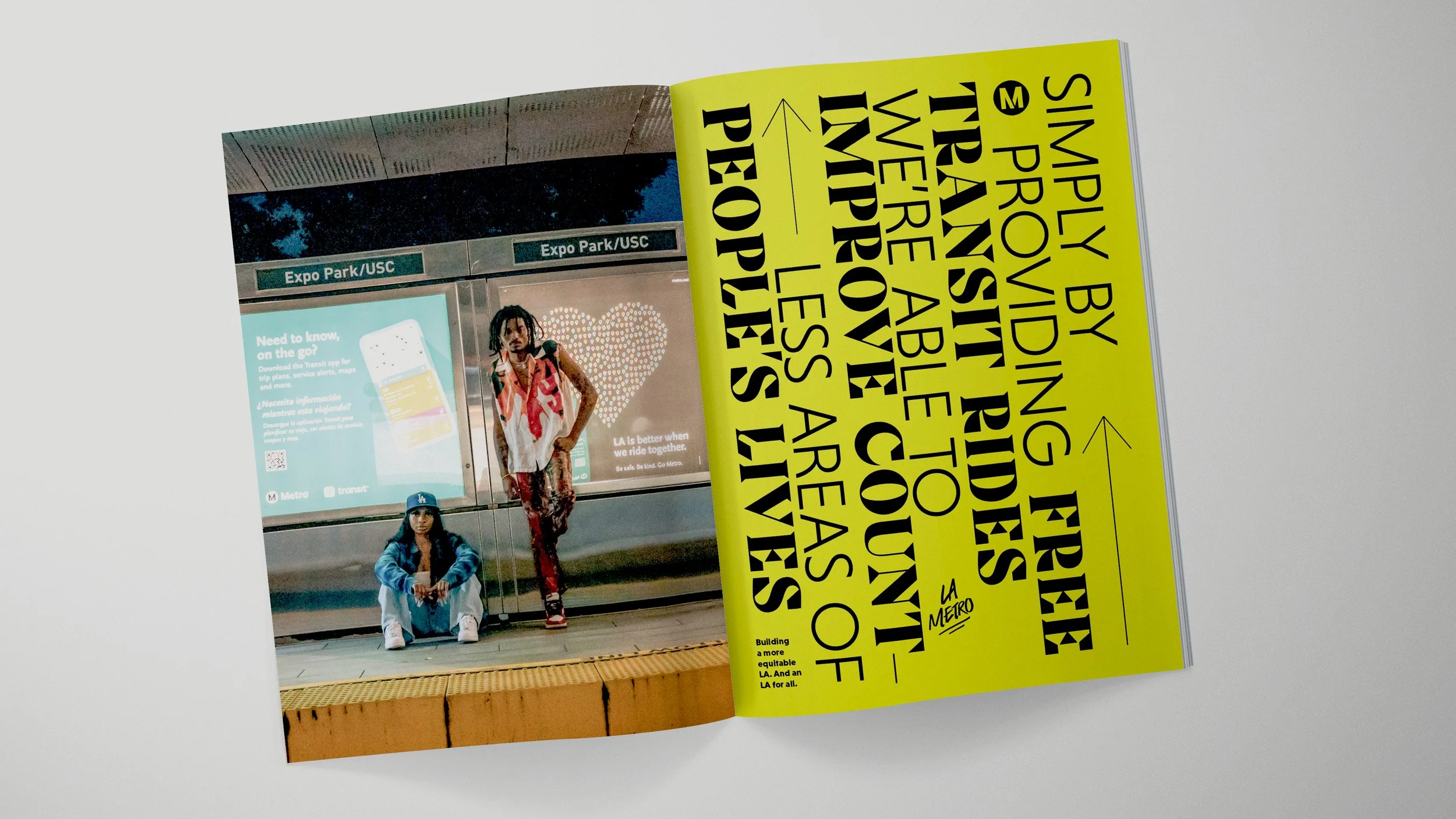 We were tasked to create a brochure that drove awareness to the Fareless System Initiative, a program advocating for free rides to marginalized communities. Through the design and copy, we aimed to raise the voices and highlight the stories, lives, and vignettes of people who rely on the LA Metro. Bringing forward the people often over looked and forgotten about.